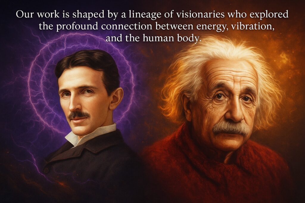 Our work is shaped by a lineage of visionaries who explored the profound connection between energy, vibration, and the human body. Their contributions—spanning physics, biology, and therapeutic innovation—continue to inform the way we approach non-invasive, frequency-based care.